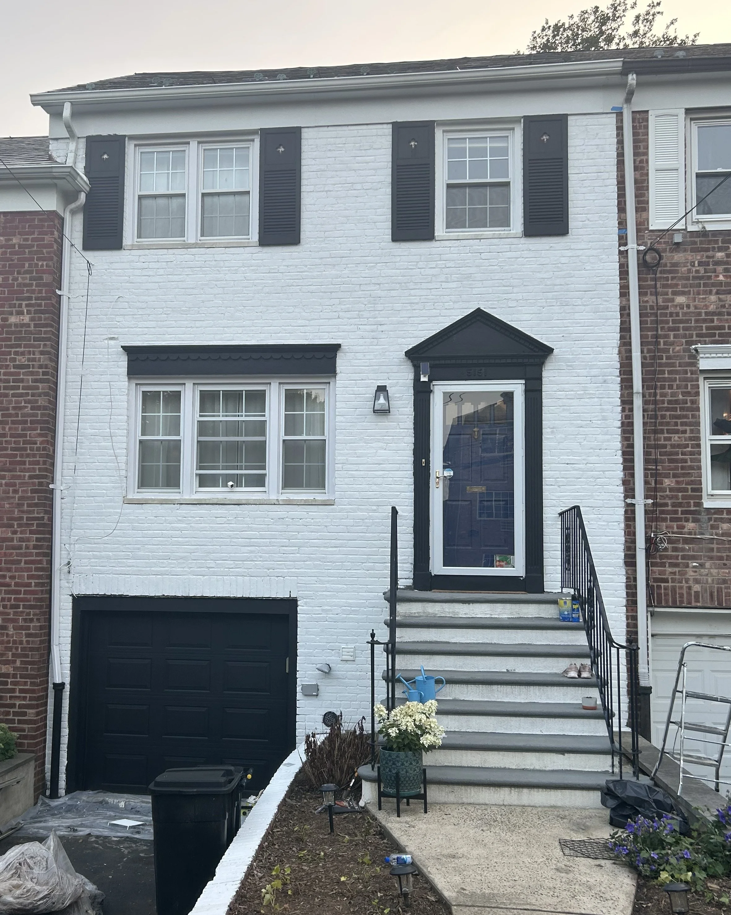This customer wanted to stand out in a row of attached brick houses. Elite painters were able to paint the brick façade white and added black accents for a classic look.